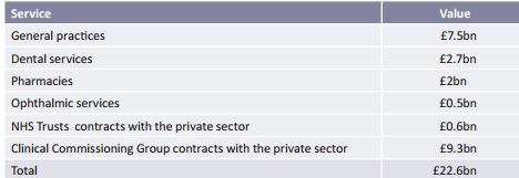 - £22.6bn total value of NHS contracts with the private sector, including primary care services.